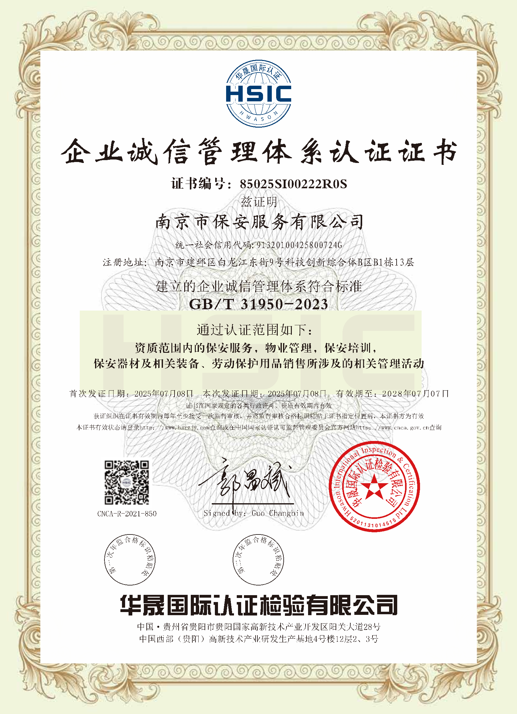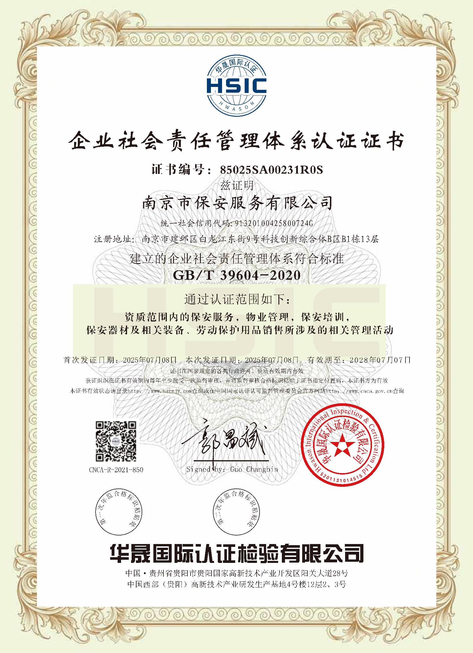 祝賀:南京市保安服務(wù)總公司通過(guò)企業(yè)誠(chéng)信管理體系認(rèn)證和企業(yè)社會(huì)責(zé)任管理體系認(rèn)證