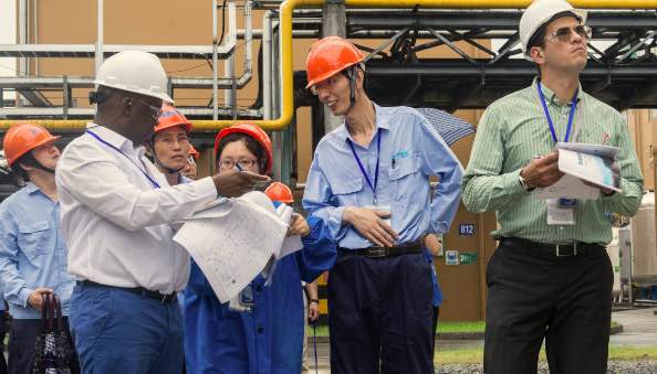 7月5日上午,OPCW視察組和國家代表、省市陪同人員在聽取核查前情況介紹后,共同前往公司生產區(qū)域進行了現場核查。視察組一行在察看企業(yè)總平面布置之后,分別對生產裝置、工藝流程等作了詳細了解,核實了企業(yè)生產經營中的相關記錄、原始臺賬、報表等,公司陪同人員客觀、專業(yè)的回答了核查組提出的各類問題。